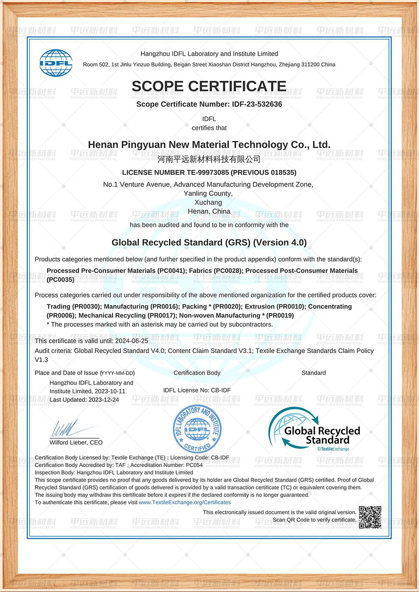 GRS 全球回收標(biāo)準(zhǔn)體系認(rèn)證